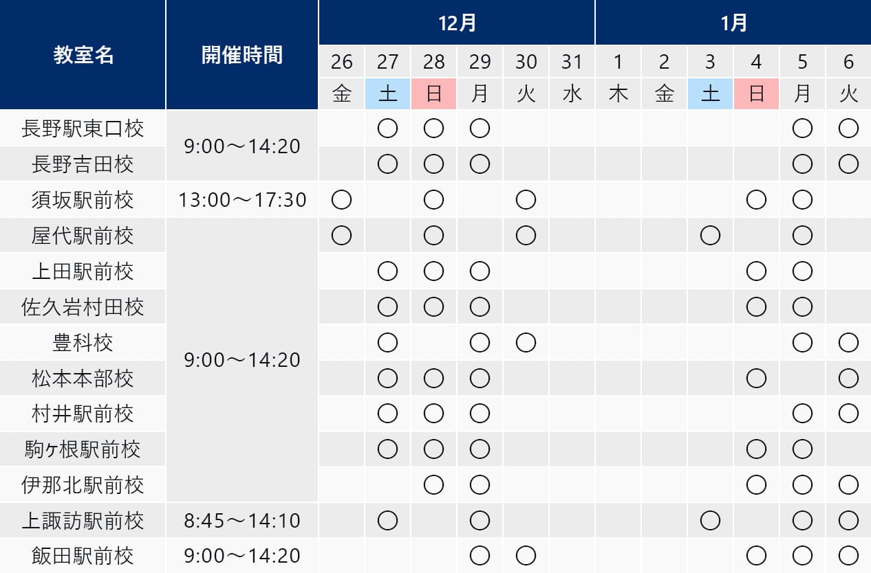 「最後の冬休みでレベルアップ!」を目指す皆様の受講をお待ちしております。