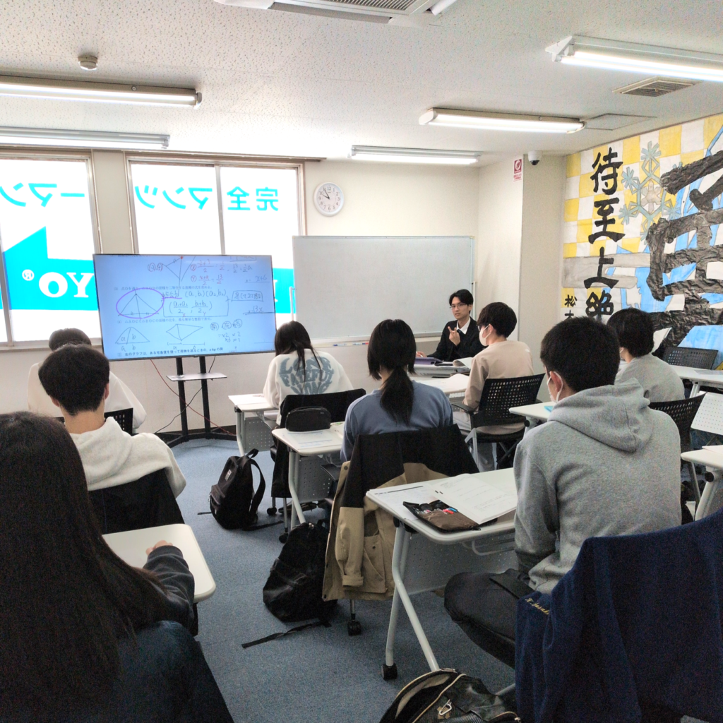 普段は、完全マンツーマンで指導を受けていますが、冬休みなどの長期休みの期間は「少人数グループの授業」と「完全マンツーマン指導」とを組み合わせて目標達成に向けて頑張っています。グループの授業で5教科の主な単元を総ざらいして、苦手なところはピンポイントでマンツーマンで教わる、というのが、成績アップできる秘訣です。
