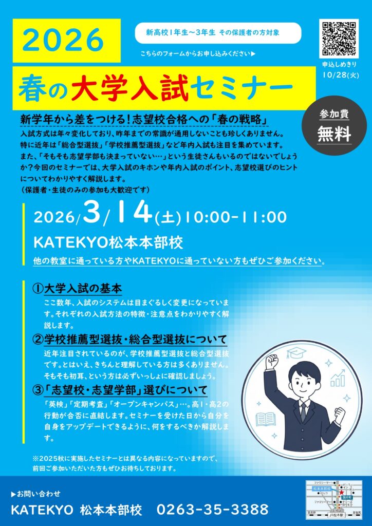 【KATEKYO松本】春の大学入試セミナーのご案内