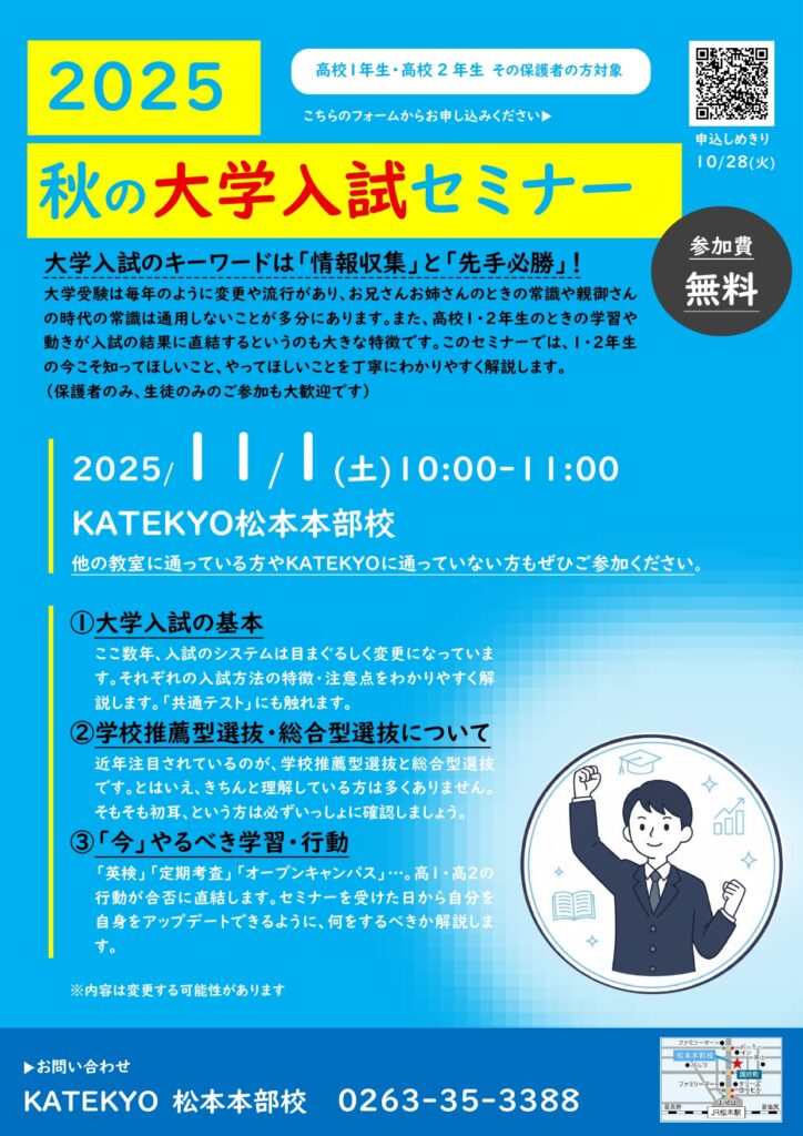 【高1・高2向け】秋の大学入試セミナー開催のお知らせ