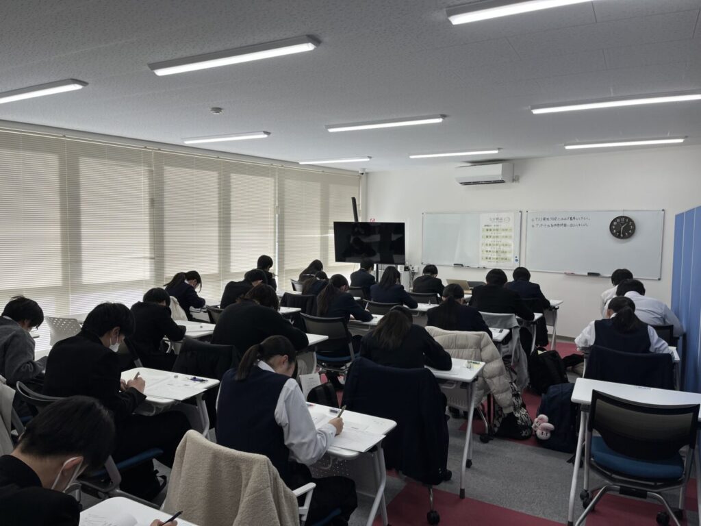 高校入試前、最後となる今回の模試。 生徒たちの表情からは、これまでの模試とは一線を画すような緊張感と、「やり切るぞ」という強い覚悟が伝わってきました。受験生の皆さん、本当にお疲れ様でした!